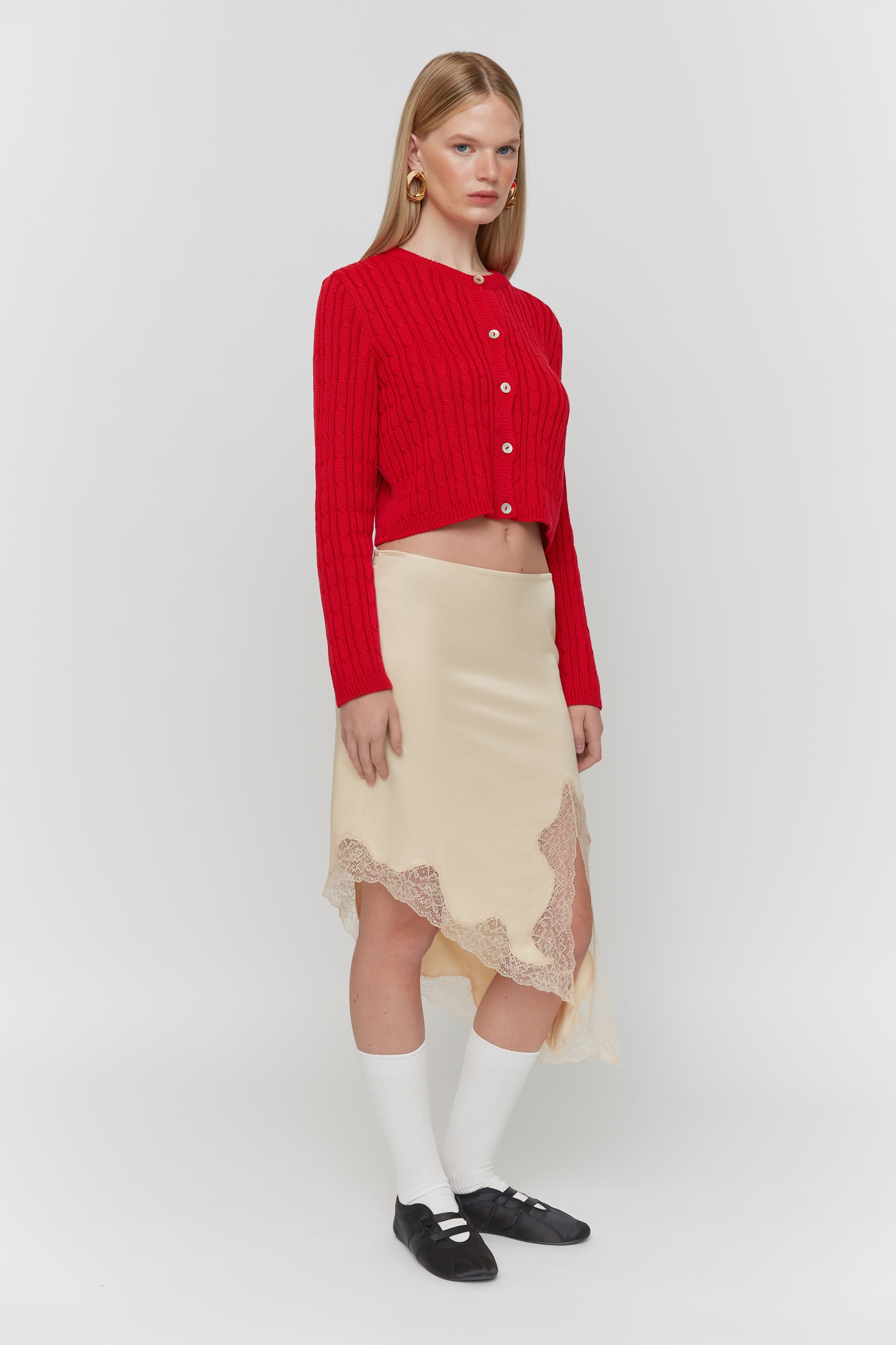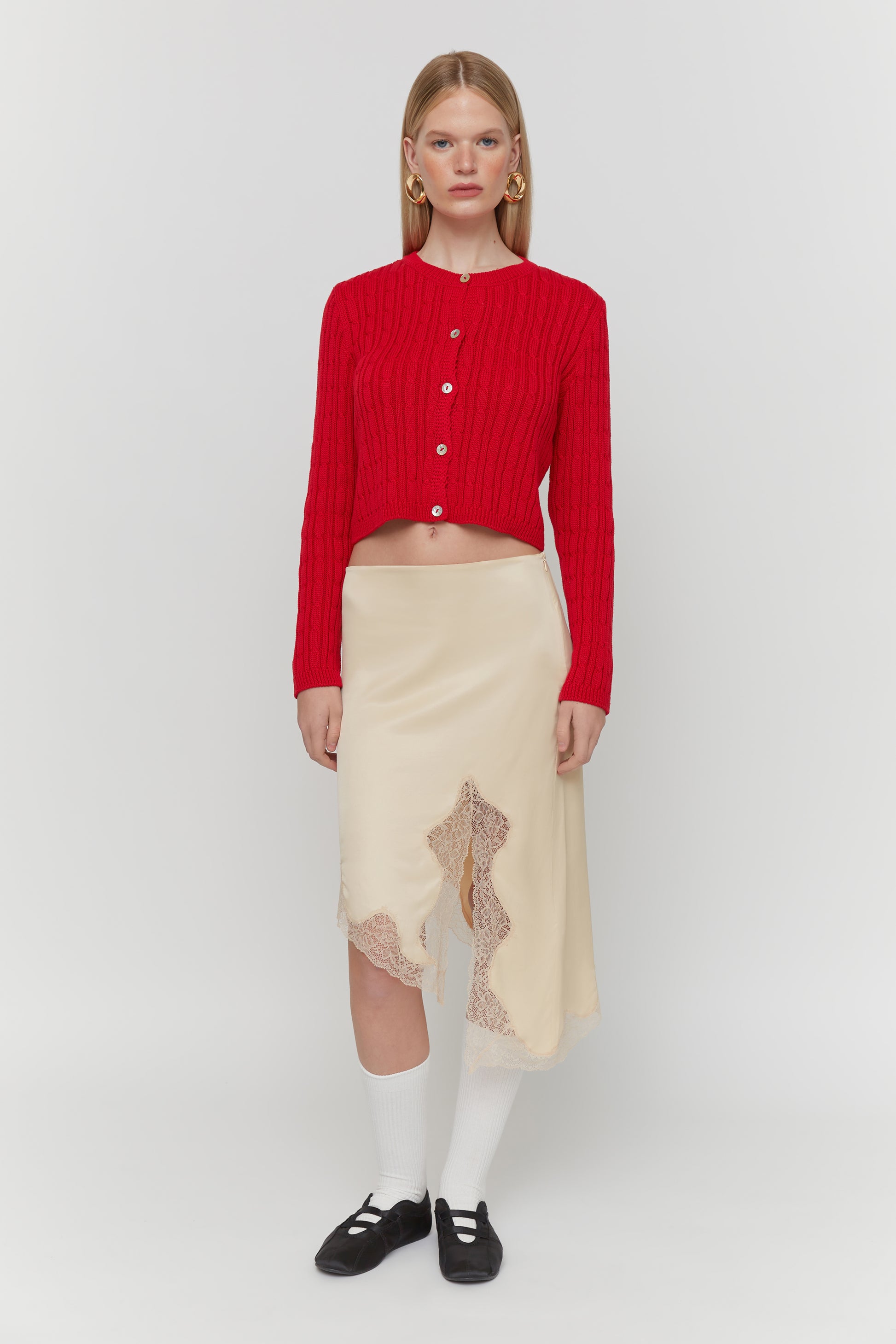 Red Crewneck Cardigan