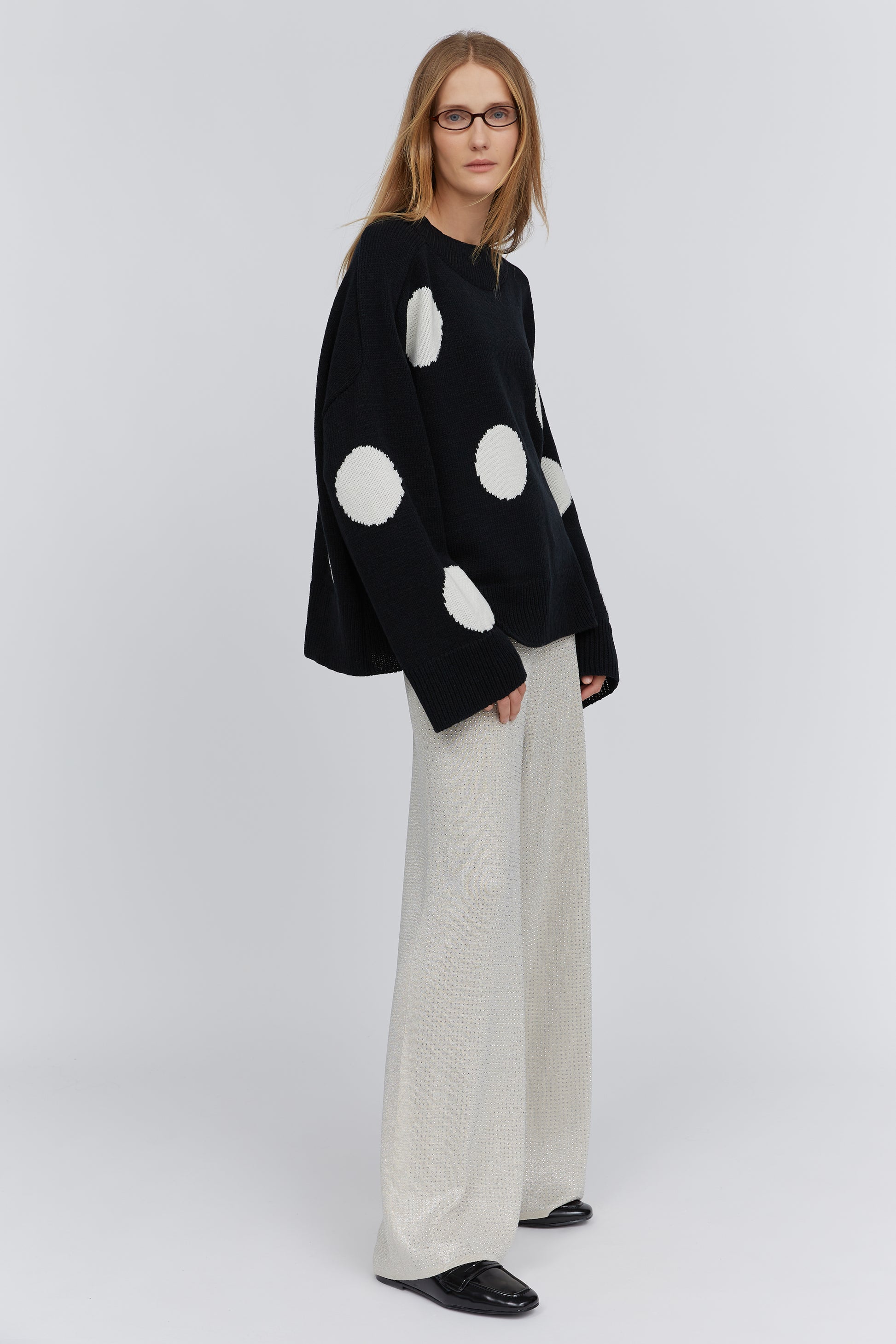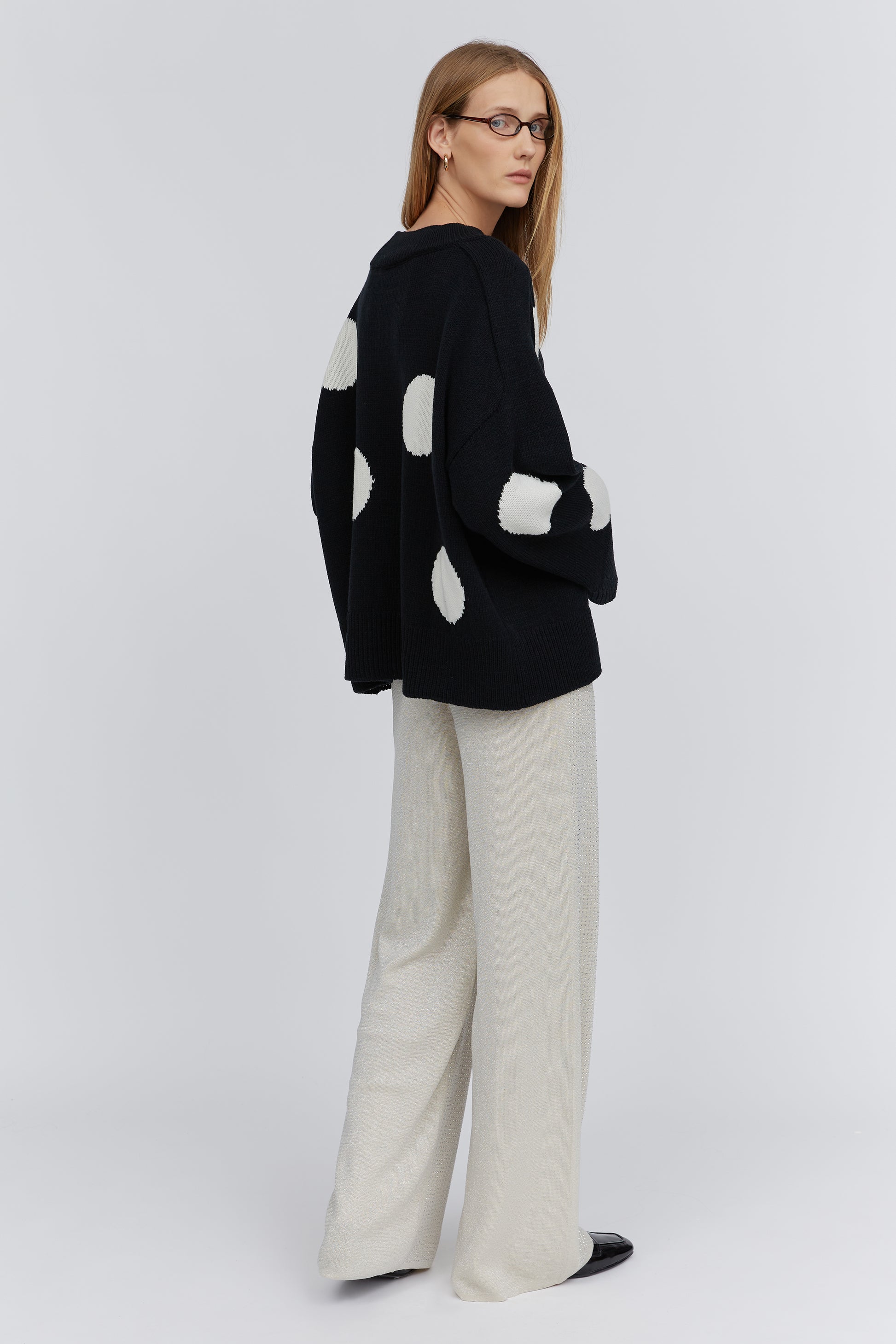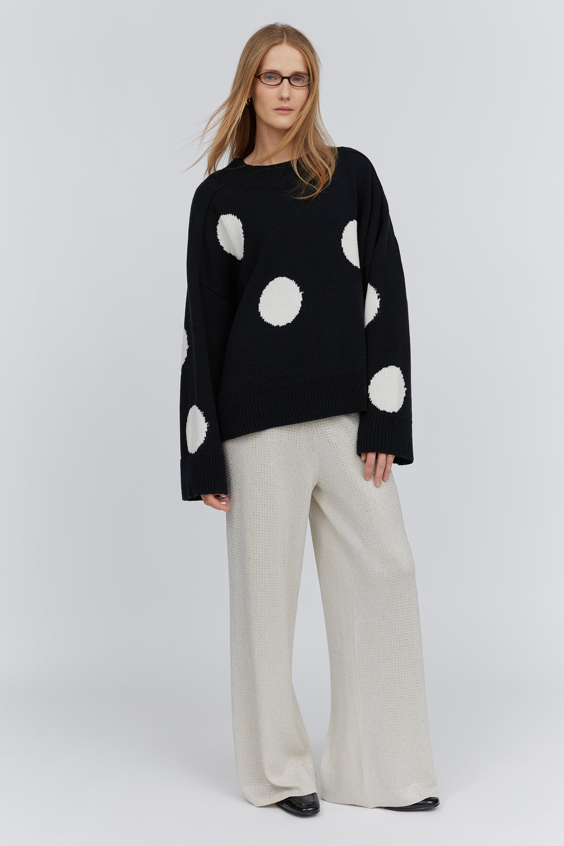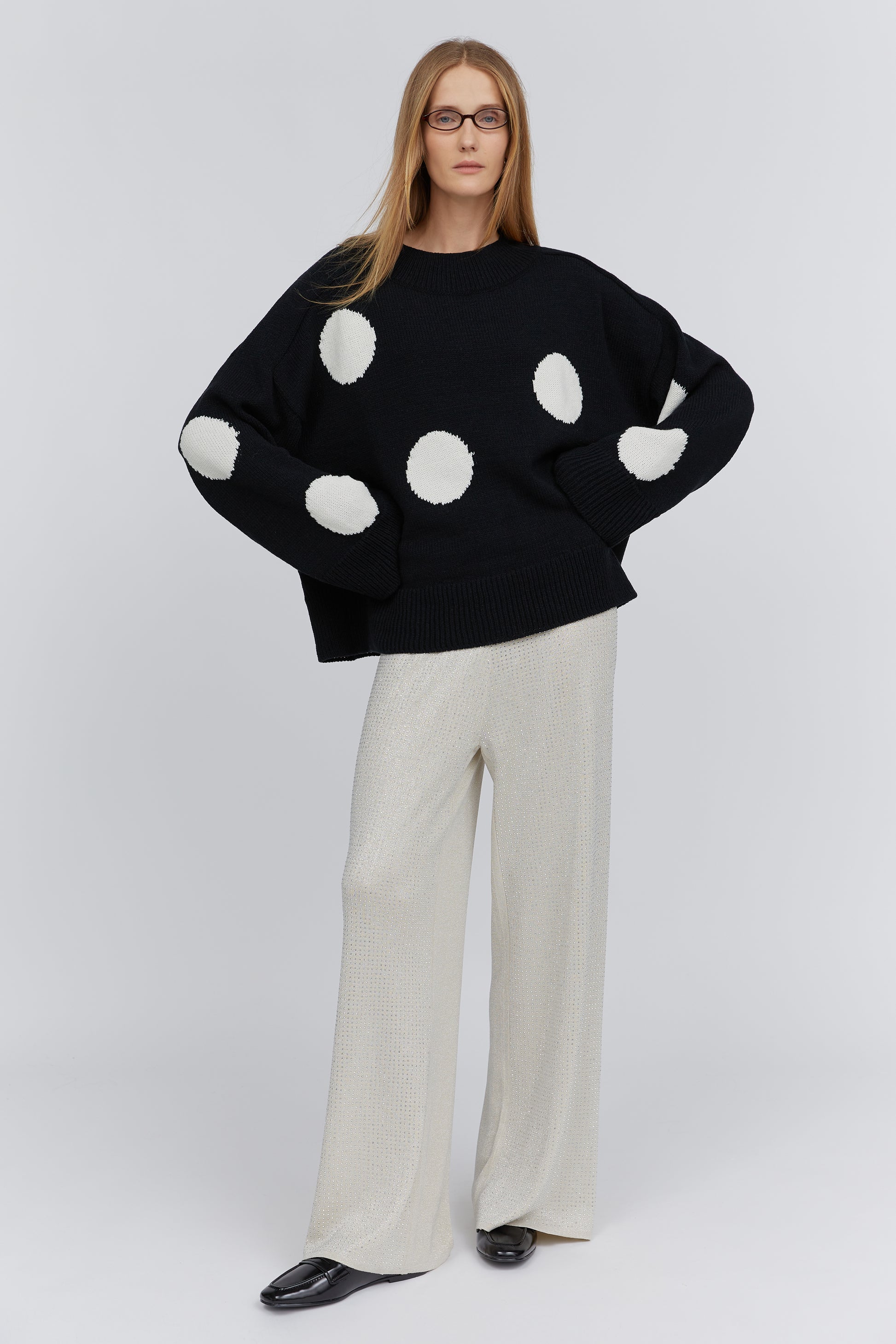 Black polka dot merino sweater