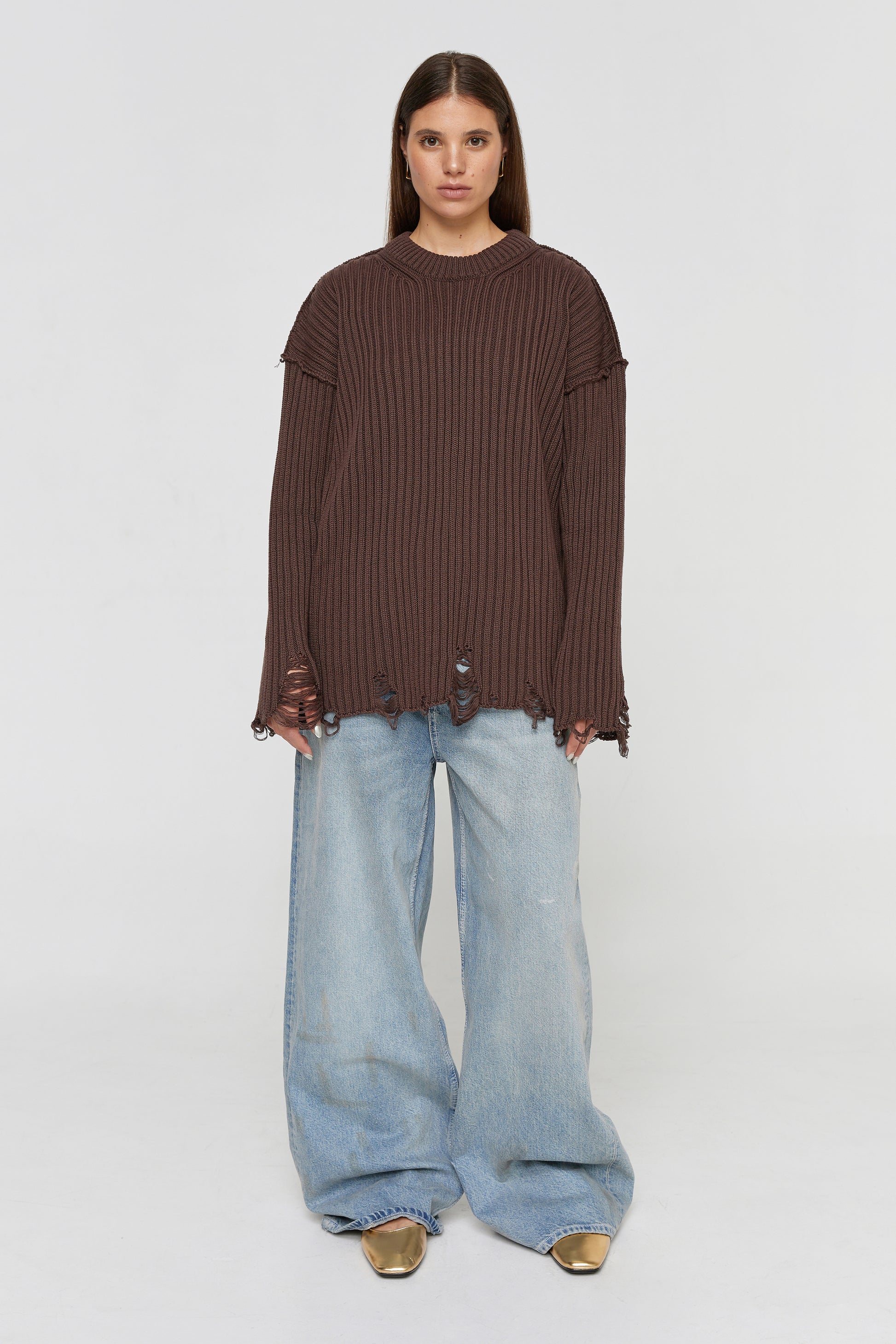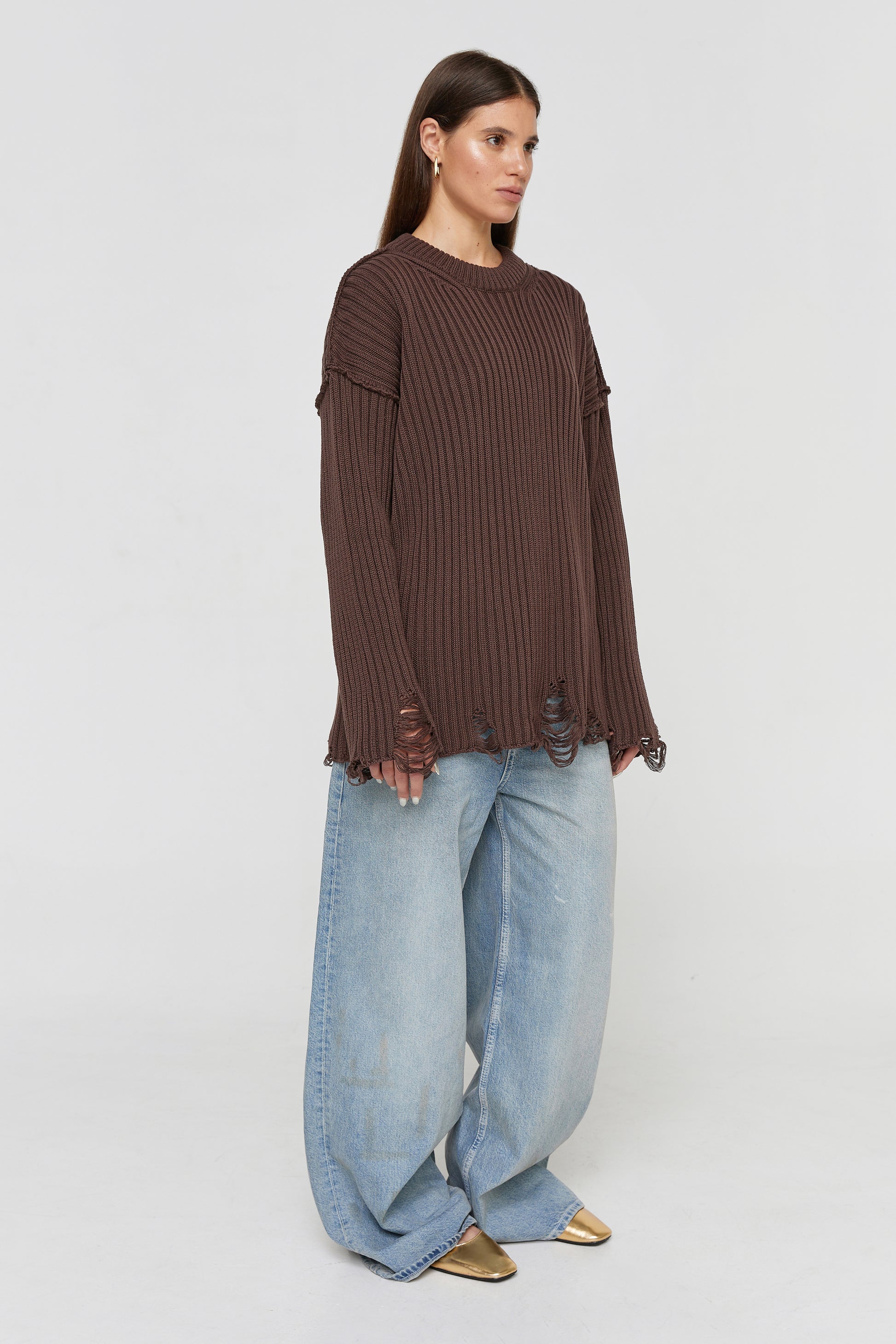 Brown Ripped Sweater