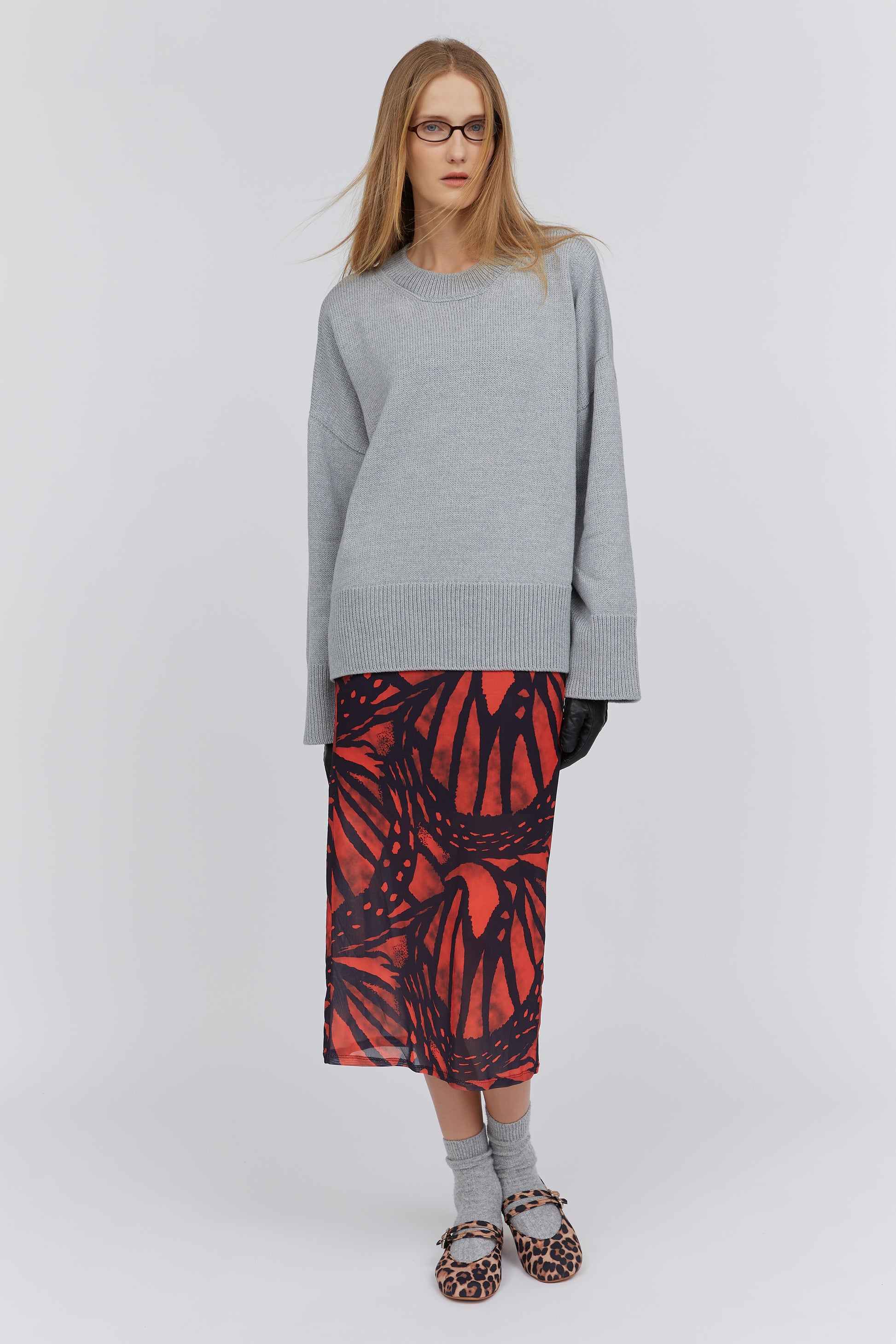 Gray crew-neck merino wool sweater